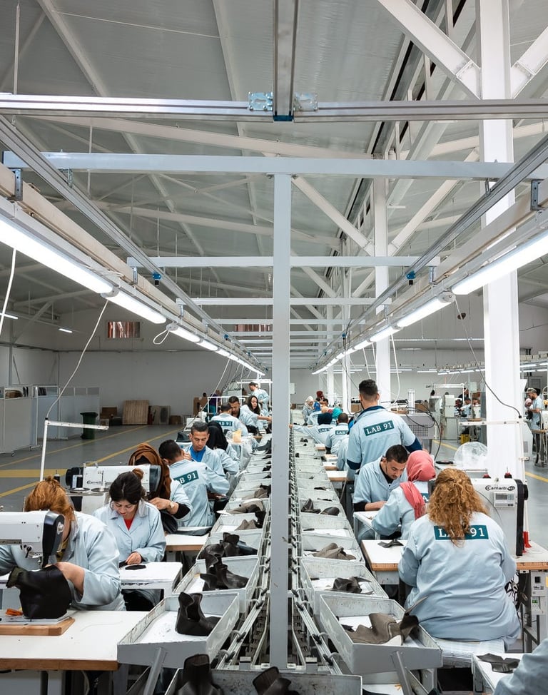L’azienda è strutturata su due catene di produzione, dedicate rispettivamente ai gruppi più prestigiosi, producendo una media di 700 paia al giorno, in linee dedicate sia all’uomo che alla donna